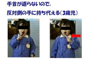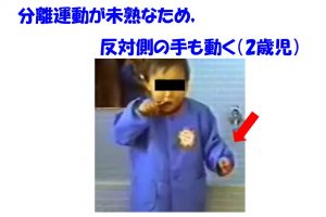 *左右の分離運動が充分できず、反対側の手(左手)も動いてしまう(2・3歳児)