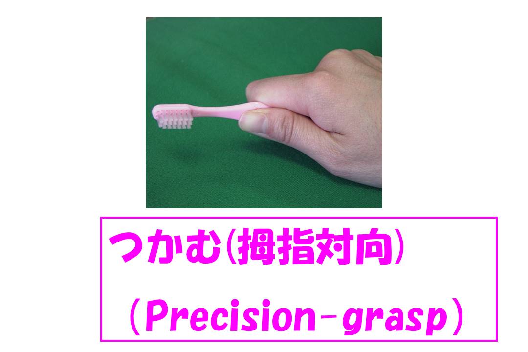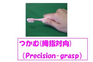 2:親指が分離して動く(拇指対向)ようになり「つかむ」(Precision Grasp)という持ち方