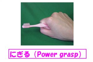 1:手のひら全体で持つ「にぎる」(Power Grasp)という持ち方。しかしこの持ち方では、細かい動きは不可能である