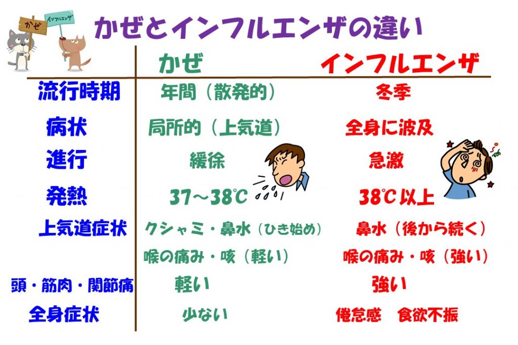 ところで、”かぜ”と”インフルエンザ”はどう違うのだろう?