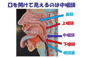 さて風邪の時、喉の痛むのは中咽頭から下咽頭である。