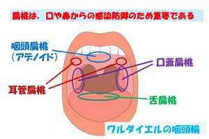 これら4つの扁桃は、口や鼻からの感染防御のため重要な役割を持つ。