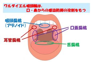これらワルダイエルの咽頭輪は、口や鼻からの感染防御としての働きを持つ。
