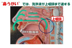 しかし、”鼻うがい”は、上咽頭まで洗浄できるという。(図1)