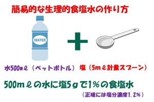養護教諭には、生理的食塩水の作り方を伝えておけば喜ばれるだろう。