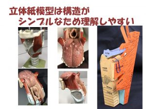それは喉頭・咽頭部を印刷した用紙を、ハサミで切り取り貼り付けて組み立てる紙模型である。