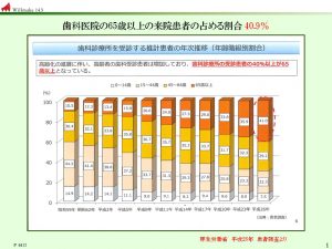 3年に一度公表される厚生労働省の患者調査によれば、2014年の時点で歯科診療所を受診する患者の41%が65歳以上となっています(図1)。