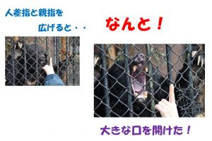 続けて、飼育員がクマの目の前で人差指と親指を広げた。