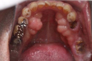 写真は、いずれもTCH(tooth contacting habit、上下歯列接触癖)の方の特徴ですが、40歳代くらいになると奥歯からトラブルが出てきて、喪失していきます。