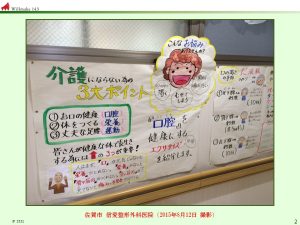 「口腔ケアと言えば、当初は介護施設などにおける口腔清掃や誤嚥性肺炎予防のための口腔ケアの重要性が話題となっていた。