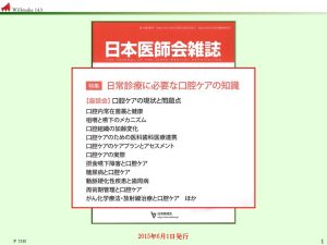 そして、日本医師会雑誌が「日常診療に必要な口腔ケアの知識」という特集を掲載したのが2015年6月号でした。