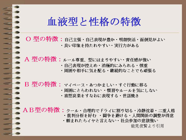 血液型と性格との関係についてはよく言われる。