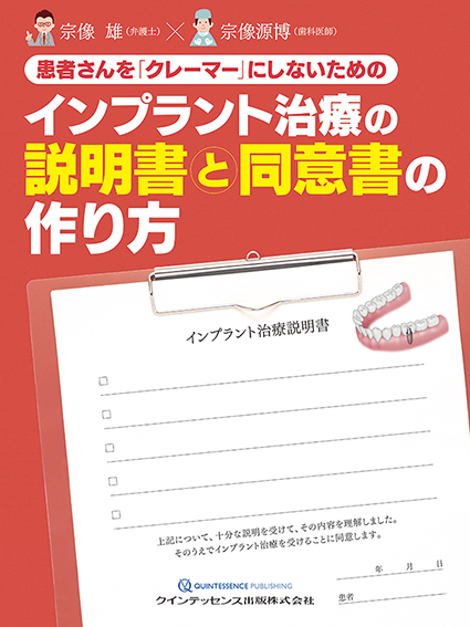 本書ではインフォームド・コンセントの意義を整理し、インプラント治療における7つの説明書・同意書を紹介する。
