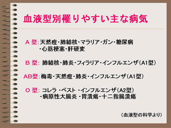 しかし全体的に病気に対する抵抗性が強い、A型の筆者にとって羨ましい血液型だ。