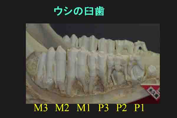 同じ草食動物でも、馬と牛では臼歯の形も違う。
