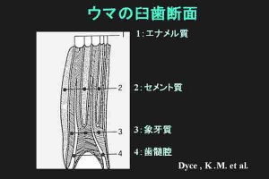 馬では、さらにエナメル質の周りをセメント質が取り囲む。