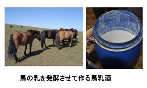 そう言えば、モンゴルでは夏になると馬の乳から馬乳酒を作る。