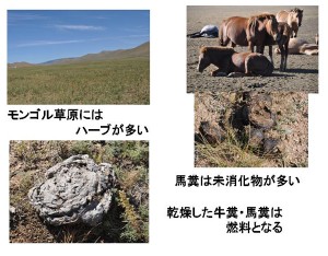 遊牧生活では、牛糞も馬糞もストーブの燃料となる。