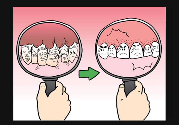 A:「○○さんは、歯石を取られ、家でもていねに磨いておられます。だから、動揺や出血が治まり、きれいなピンク色の歯グキになりました。これはあなたが頑張られたからです。」
