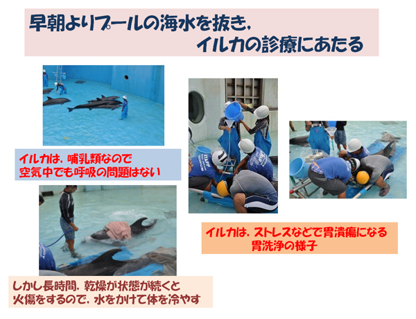 そこで早朝に、プールの海水を抜いて胃洗浄を行う。