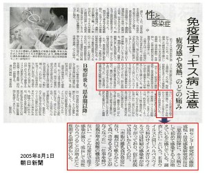 別名「キス病」と言われ、唾液中のヘルペスウイルスの仲間であるEBウイルスにより起こる急性感染症である。(注2)