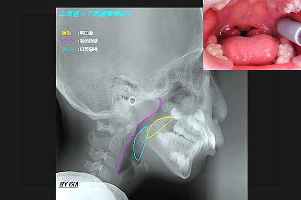さて扁桃腺が腫れている子ども達の、X線側貌セファロ写真を撮影してみた。まず、鼻呼吸をしている男児。
