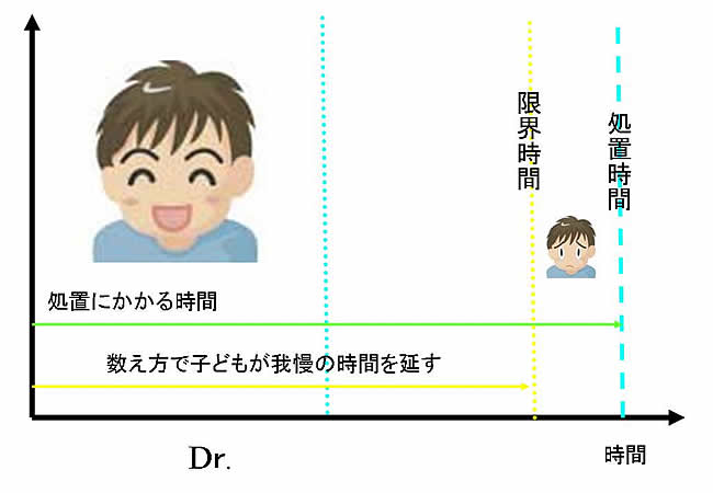 さて、10分を越える処置を行うと泣き始める子どもがいたとします。