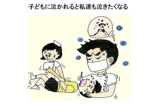 泣いてからあわてるより、まず泣くか、泣かないかギリギリのレベルにいる患児を、どうしたら泣かせずにすむか?という方法を考える方が得策です。