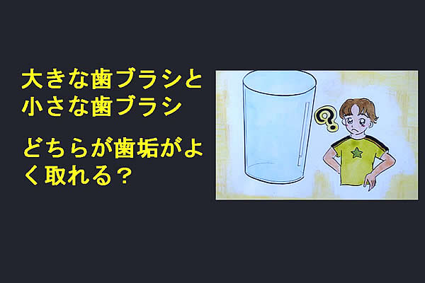 それではこの汚れ、大きな歯ブラシと小さな歯ブラシでは、どちらが取りやすいだろう?