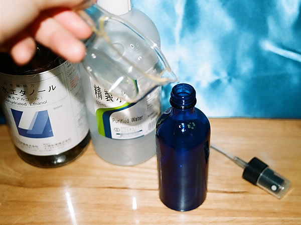 ・無水エタノール5mlに精油5滴を加え混ぜます。