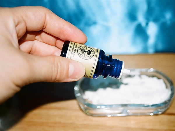 ・天然塩(または重曹、コーンスターチ)大さじ3+精油4~5滴を小さい容器か布製の袋にいれて置いておきます。