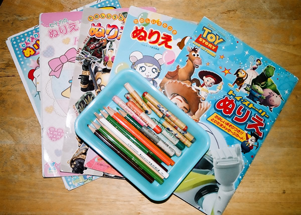 絵本やおもちゃも用意してありますが、意外に人気なのは塗り絵です。