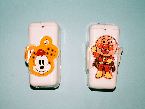 そこで、フロスのパッケージに、お子さんに人気のキャラクターをパウチ加工して両面テープで貼ってみました。