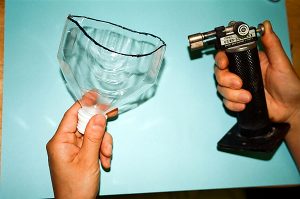 2.アルコールトーチで遠くから温めて、辺縁をまるめます。