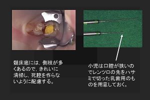 レンツロは、乳歯の根菅充填用にあらかじめ短く切っておきます。