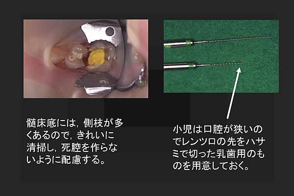 乳歯は膿瘍等の症状が発現しやすいので、拡大したところまでは完全に根管充填したいものです。