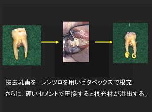 乳歯は吸収される糊材根管充填を行います。
