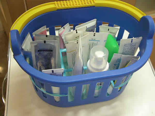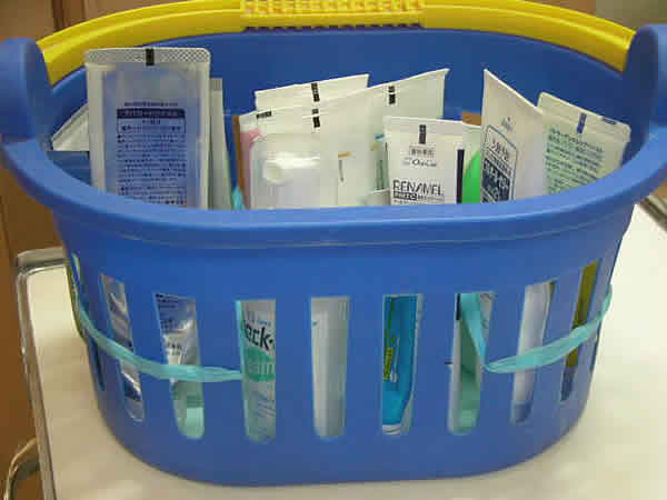 100円ショップのプラスチックケースは簡単に仕切りを作り、保管することができますが、この診療室では100円ショップのかごタイプの入れ物だったので、仕切りをするのが難しく、いつもごちゃごちゃになっていました。