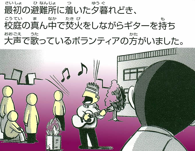 ある避難所へ着いた時、すでに暗くなり始めていた。