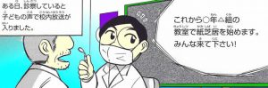「これから○年生△組の教室で紙芝居を始めます。みなさん来てください!」