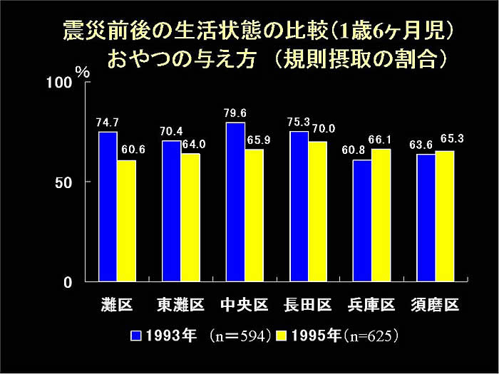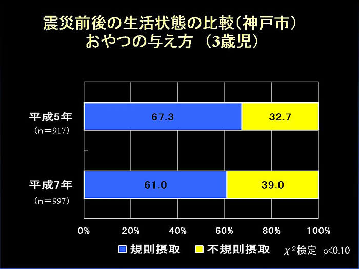 参考:阪神淡路大震災の前後における乳幼児の生活習慣の変化について、小児歯誌、34:534,1996.