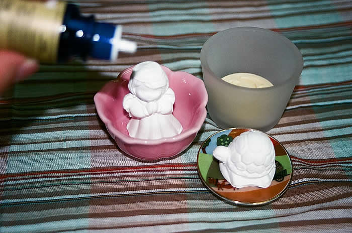 正しくは違うのかもしれませんが、「石膏ポマンダー」に、アロマテラピーの精油(エッセンシャルオイル)を数滴たらすと、同じように吸収され、数時間、香りを楽しむことができました。