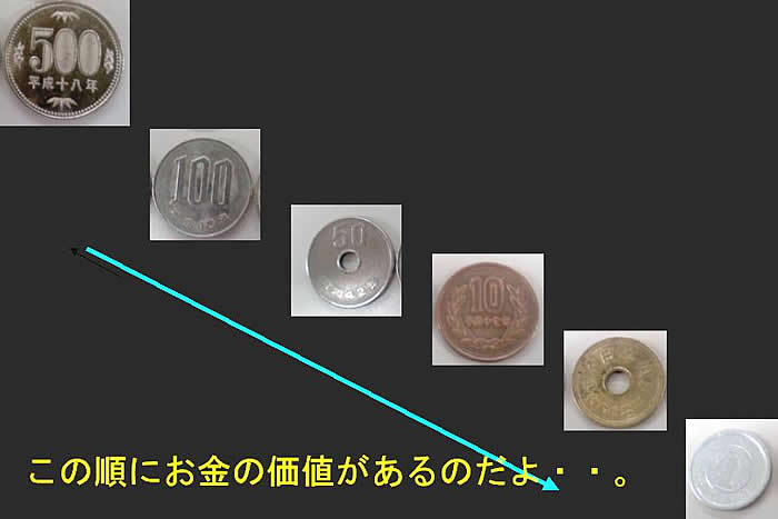 「この順番にお金の価値があるのだよ。みんなもこの順に並べてごらん。」と言った。