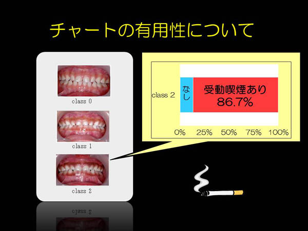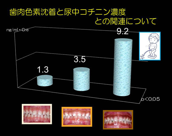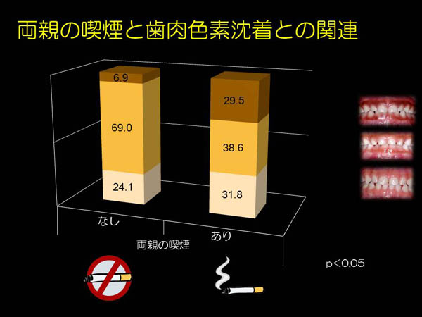 しかし著しい歯肉沈着では、約85%が受動喫煙の影響と考えられる。