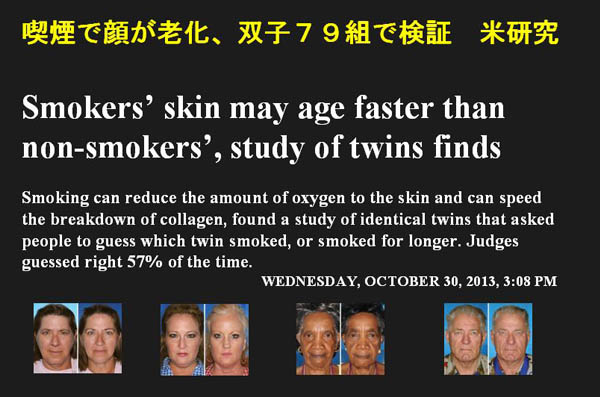 (注2)NYDailyNews.com:Smokers’ skin may age faster than non-smokers’, study of twins finds (October 30, 2013)
