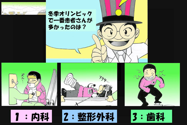 ところで某冬季オリンピックの選手村、もっとも患者数の多かったのはどの科だろう?
