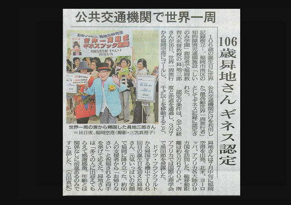 106歳では“公共交通機関を利用して世界一周をした最高齢者”としてギネス世界記録にも認定された。
