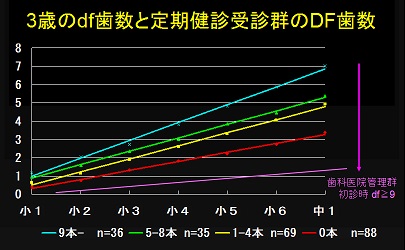 さて前回、3歳で乳歯う蝕のない小児は、12歳での永久歯う蝕は平均3.4歯。