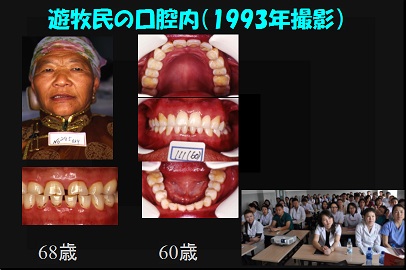 歯学生には、この話をした後、20数年前に撮影した遊牧民の口腔写真を見せる。