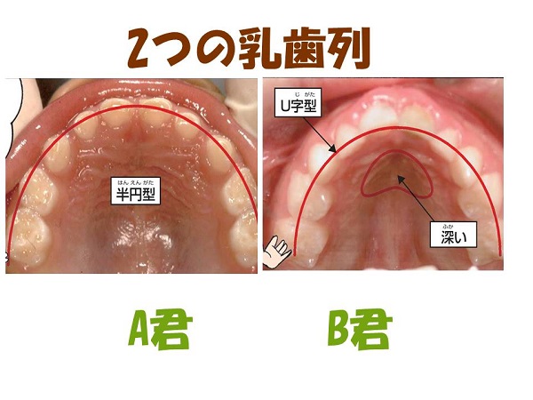 一方、B君は狭くて空隙がなく、口蓋も深い。